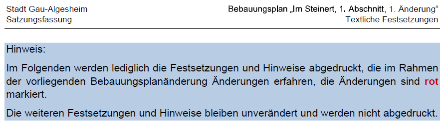 (Auszug aus den Textlichen Festsetzungen. Alle weiteren Festsetzungen siehe Bebauungsplan "Im Steinert 1. Abschnitt")